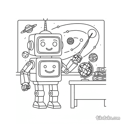 Здесь вы найдёте сцены, где у доски стоит учитель-коала с глобусом или добрый учитель-капибара. Робот-учитель объясняет у доски планеты, а юная художница рисует на ней мурал. Есть и более фантастические сюжеты: например, нитевидная бактерия в роли учителя или три хакера, обсуждающие что-то у маркерной доски. Все контуры чёткие и хорошо прорисованные, что идеально подходит для детского творчества. Вы можете скачать всю подборку одним архивом для удобной печати или раскрашивать картинки прямо на сайте.