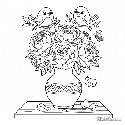 В этом разделе дети смогут раскрасить букеты пионов и лаванды в керамических вазах, простые букетики в стеклянных банках на подоконнике. Также здесь есть сюжеты с ёжиком, составляющим букет на веранде, и лисичкой-флористом в цветочном магазине. Все 14 раскрасок с букетом доступны для бесплатной загрузки в формате PDF. Вы можете распечатать любую понравившуюся картинку одним кликом или раскрасить её прямо на сайте с помощью удобных онлайн-инструментов. Контуры всех изображений четкие и хорошо прорисованные.