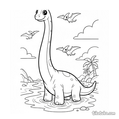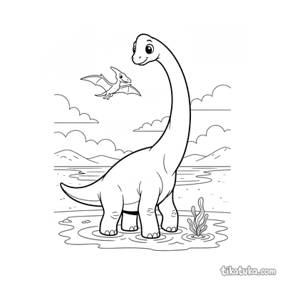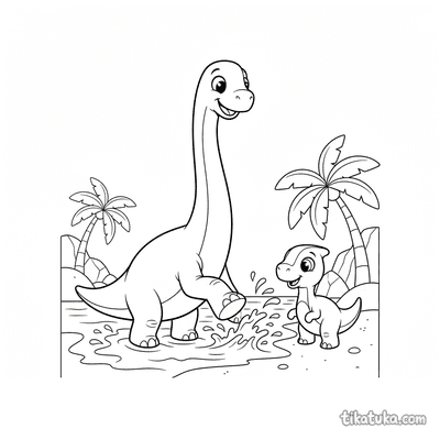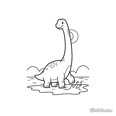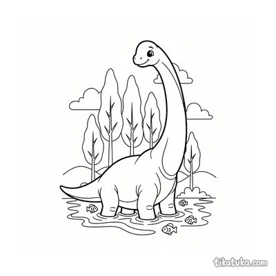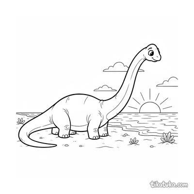 На странице собраны раскраски, где брахиозавр плещется в прибрежной воде, отдыхает на закате или пьёт из озера. Есть и сцены с детёнышем этого динозавра на мелководье. Все контуры чёткие и подходят для раскрашивания карандашами или фломастерами. Вы можете скачать все 17 картинок одним архивом для удобной печати или раскрашивать брахиозавра прямо на сайте.
