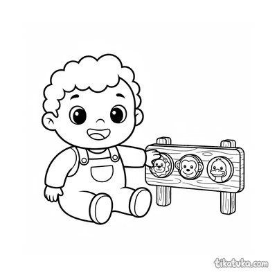 Малыш с табличкой кнопок звуков животных