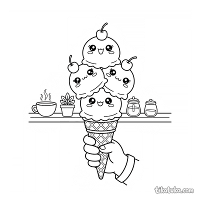 В разделе собраны сцены из кафе: чашка бобы балансирует, фруктовый тарт держит ягоду, а трио шариков мороженого весело марширует. Вы найдете улыбающиеся стаканчики, празднующую чашу рамэна с паром и даже дуэт суши-роллов на стойке. Все рисунки имеют четкие контуры, что идеально подходит для детского творчества. Вы можете скачать все 14 раскрасок кафе одним архивом для удобной печати или раскрашивать понравившиеся сцены прямо на сайте.