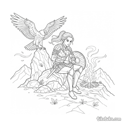 Воинственная принцесса чинит доспехи у костра