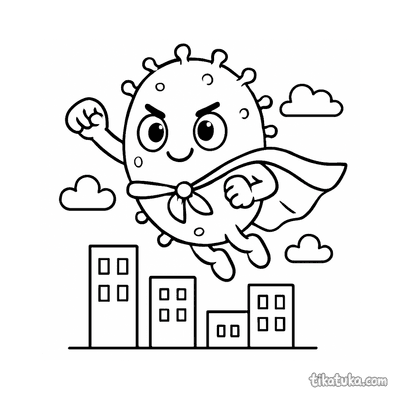 Среди 10 черно-белых контурных рисунков вы найдёте микроба-супергероя в плаще, вибриона-детектива, детей, прыгающих по лужам в дождевиках, и даже бактерию у зубной щётки. Есть и фантастические сюжеты с запуском пробковой ракеты или полётом на дощечке над лужей. Все изображения имеют чёткие контуры, что удобно для печати даже на домашнем принтере. Вы можете скачать всю подборку разом или раскрашивать понравившиеся сцены прямо на сайте.