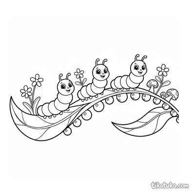 В этой подборке гусеница ползает по веткам и листьям, ест ягоды и даже спит в гамаке. Дети найдут сцены, где она считает фрукты, управляет винтажным автомобильчиком или участвует в параде на росистом листе. Все 22 раскраски с гусеницей можно скачать одним архивом для удобной печати или раскрашивать прямо на сайте. Четкие контуры и крупные детали делают эти черно-белые рисунки подходящими для самых маленьких художников.