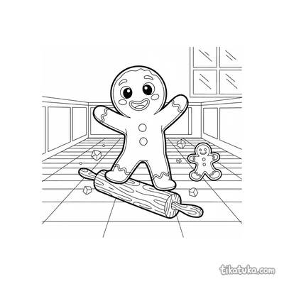 Пряничный человечек на скалке по шахматному полу