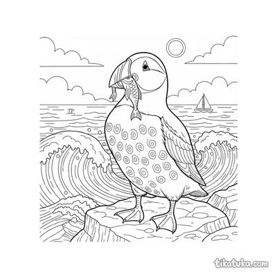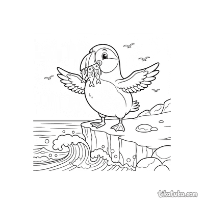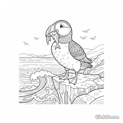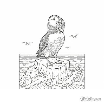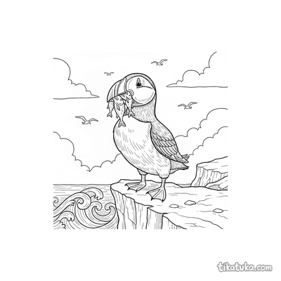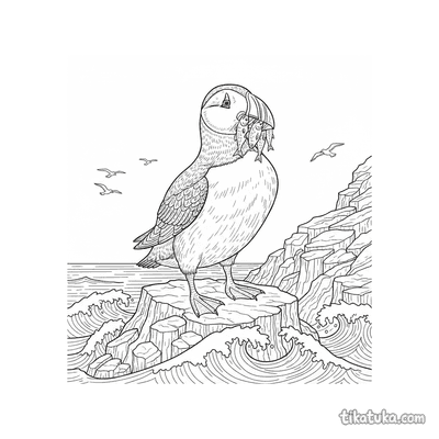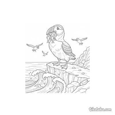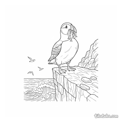 В этом разделе вы найдете сцены с тупиками, которые держат рыбу в клюве на самом краю скалы, сапсанов, сидящих на каменистых выступах, и одиноких птиц на фоне океана. Многие рисунки показывают утёс как часть морского пейзажа с волнами внизу.