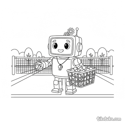 Теннисный робот-тренер с корзиной мячей