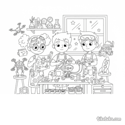 В подборке вы найдете сцены, где мальчик или девочка читают комикс в гамаке, а также необычные сюжеты в стиле комиксов: шашлычок из персонажей, ретро-геймеры в аркадном зале или баклажан-стейк. Есть и фантастические истории про ребёнка-космонавта, команду сборщиков роботов и марширующий оркестр улиток. Все 14 раскрасок комиксов доступны для бесплатного скачивания в формате PDF, что удобно для массовой печати целой серии. Четкие контуры и крупные детали на черно-белых листах помогут юным художникам аккуратно заполнить цветом каждую сцену.