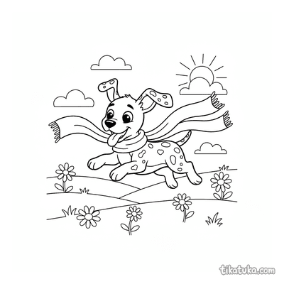 Щенок далматина гонится за шарфом