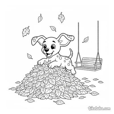 Щенок далматина в осенних листьях