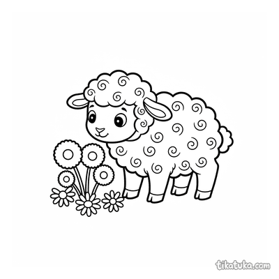 Кудрявый ягнёнок на лугу
