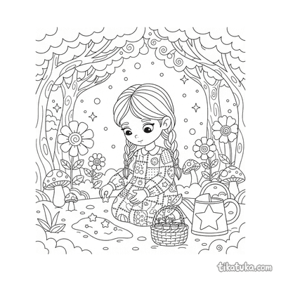 Юные художницы найдут здесь сцены, где девочки в платьях из лоскутков ловят светлячков, поливают гигантские грибы или гоняются за одуванчиками. Есть картинки, где героиня строит башню из кубиков, сажает волшебные семена или запускает в небо необычного воздушного змея. Все контуры четкие и понятные, что идеально подходит для детского творчества. Вы можете скачать весь набор платьев одним архивом для удобства или раскрашивать любимые сюжеты прямо на сайте.