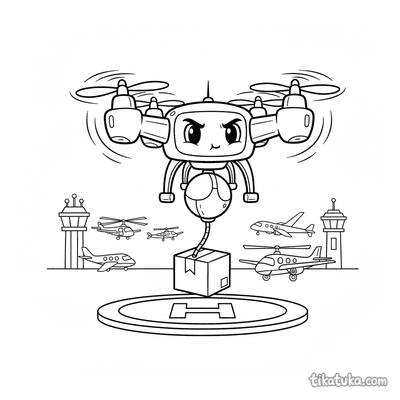 На странице представлены сцены с футуристическими дронами-доставщиками, ремонтными роботами, четвероногими грузчиками и роботами-уборщиками. Вы найдете картинки, где мальчик-изобретатель тестирует летающую тарелку или где высокий робот проводит инвентаризацию на складе. Все 59 раскрасок с дронами доступны для бесплатного скачивания в формате PDF, что удобно для массовой печати целой подборки. Четкие линии и продуманные сюжеты делают процесс раскрашивания увлекательным как на экране, так и на бумаге.