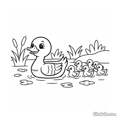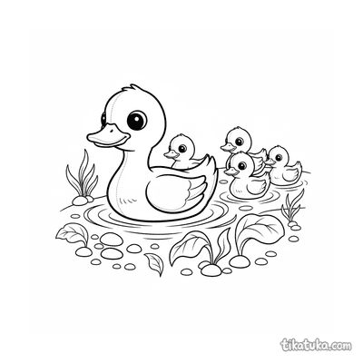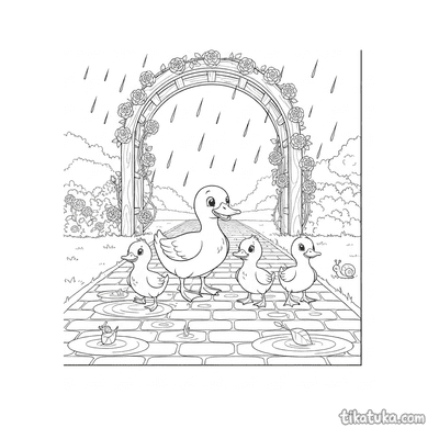 В коллекции представлены сценки с утятами после дождя, семья уток в ручье и малыши, прыгающие по лужам. Есть здесь и необычные сюжеты, например, утиный педальный катамаран или уточка-лодочка на пруду. Все 12 раскрасок можно скачать одним архивом для удобной печати целой подборки. Четкие контуры рисунков хорошо подходят как для онлайн-раскрашивания, так и для работы цветными карандашами или фломастерами.