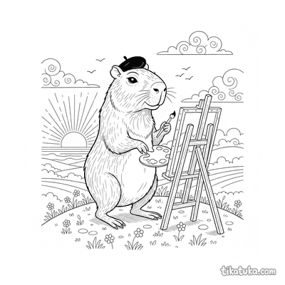 В коллекции вы найдете сюжеты, где за мольбертом работают самые разные художники: девочка с акварелью, робот, лиса-учитель рисования, пони и даже капибара, пишущая закат. Есть и необычные локации, например, плавучая художественная студия на морской платформе. Все 18 раскрасок имеют четкие контуры, что позволяет легко распечатать их на обычном принтере для занятий дома или в классе. Вы можете скачать понравившиеся сцены одним файлом или раскрашивать их прямо на сайте, выбирая виртуальные карандаши.