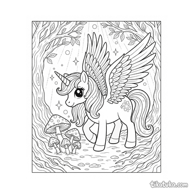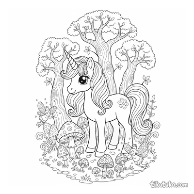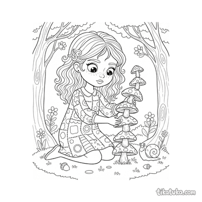В этом разделе собраны сцены из волшебного леса: единороги у лесных водоёмов, девочки, рисующие на огромных грибах, светлячки среди светящихся растений и путешествия на гигантских улитках. Каждая картинка рассказывает свою небольшую историю о чудесах этого леса. Все 38 раскрасок доступны для бесплатного скачивания в хорошем качестве. Вы можете распечатать любую понравившуюся сцену на обычном принтере — чёткие контуры и крупные детали отлично подходят для детского творчества.