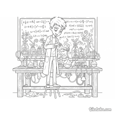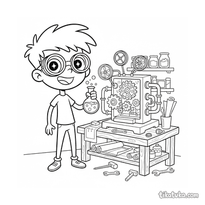 Эти раскраски посвящены миру экспериментов и научных открытий. На странице собраны сцены, где персонажи ставят опыты, создают изобретения и исследуют окружающий мир. Каждая картинка — это история о любознательности и познании.
