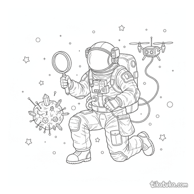 На странице собраны сюжеты о космонавтах, высаживающихся на Луну и астероиды, о роботах-астронавтах на инопланетных лунах и астрогеологах, изучающих небесные тела. Есть и подводные исследования: паровые аппараты у коралловых рифов и любознательные герои с лупами, рассматривающие мир вокруг. Все контуры четкие и подходят для печати на обычном принтере. Вы можете скачать всю подборку или выбрать отдельные листы, чтобы сразу приступить к творчеству.