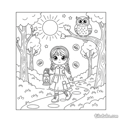 В этом разделе собраны сцены, где светлячки освещают путь девочкам, читающим под грибами, или кружатся вокруг единорогов на лунных лужайках. Вы найдете изображения с волшебными рощами, светящимися грибами и персонажами, которые ловят этих насекомых в банки. Все 32 раскраски выполнены в четком черно-белом формате с проработанными контурами, что удобно для юных художников. Вы можете скачать весь набор разом для занятий в группе или раскрашивать любую понравившуюся сцену прямо на сайте.