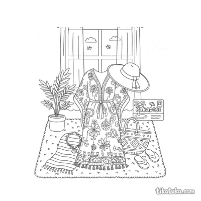 Раскладка, или flat lay, — это особый стиль композиции, где предметы аккуратно разложены на поверхности. Такие раскраски показывают детали нарядов, аксессуаров или целые комплекты в разложенном виде. Это интересный способ рассмотреть все элементы сюжета.