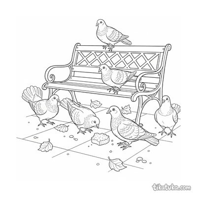 Стая голубей у скамейки