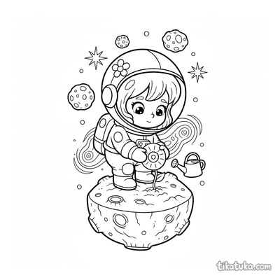 В коллекции представлены цветы в самых разных ситуациях: шмель отдыхает на лепестке ромашки, фея поливает огромный светящийся бутон, а девочка-космонавт сажает цветок на далеком астероиде. Вы также встретите дружелюбных персонажей, ухаживающих за растениями, — от микроба-садовника с лейкой до лохматого монстра. Все изображения выполнены в виде четких черно-белых контуров, что идеально подходит для детского творчества. Вы можете скачать всю подборку или распечатать несколько понравившихся раскрасок за раз, чтобы создать свою собственную цветочную галерею.