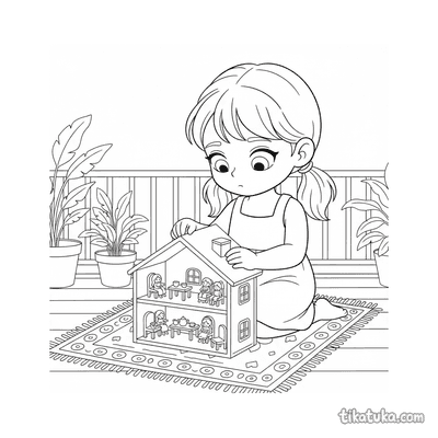 Девочка играет с кукольным домиком