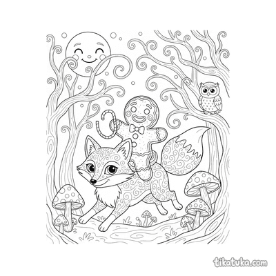 В этом разделе собраны сцены с лисой из известных сказок, например, с Пряничным человечком, которого она везёт на спине через лес или через мост. Лиса здесь может быть верным спутником в путешествии или главной героиней лесной истории. Все изображения — это готовые контурные рисунки с четкими линиями, которые удобно раскрашивать карандашами или фломастерами. Вы можете скачать всю коллекцию или распечатать только понравившиеся картинки, чтобы создать свою собственную книжку-раскраску про лису.