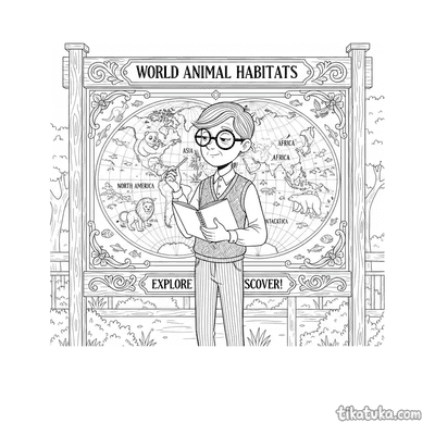 В этом разделе собраны сцены, где персонажи изучают карты: зоолог показывает ареалы обитания обезьян, семья рассматривает карту мира с животными, а студент заполняет континенты соответствующими зверями. Есть и детальные карты мест обитания, и даже мышь-картограф с древним свитком. Все эти сюжеты помогают в игровой форме освоить основы географии. Вы можете скачать все 11 раскрасок одним архивом для удобной печати или раскрашивать их прямо на сайте. Четкие контуры каждого рисунка отлично подходят для детского творчества.