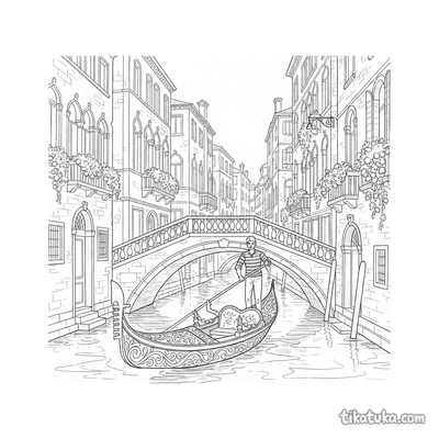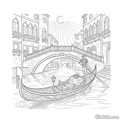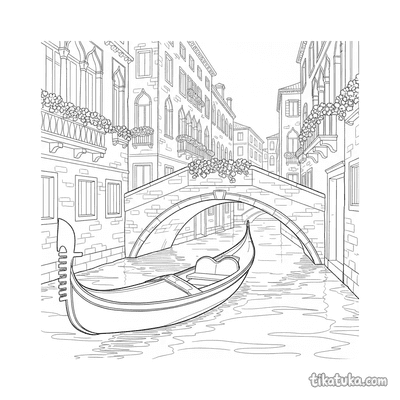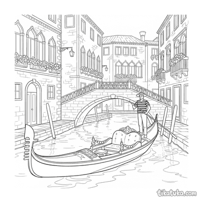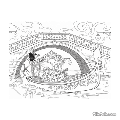 Гондола — это традиционная венецианская лодка, ставшая символом города. На этих раскрасках она предстает в разных романтичных сценах. Дети смогут раскрасить этот знаменитый водный транспорт.