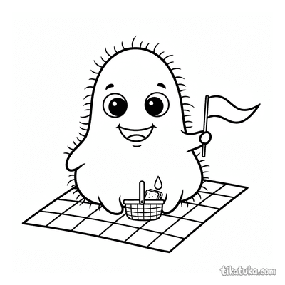 Дружелюбная амёба-микроб с глазками-бусинками и ресничками на пикнике