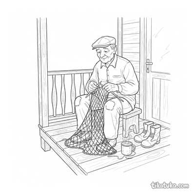 Среди сюжетов вы найдете дедушку, который чинит рыболовную сеть на веранде, читает газету или вяжет в кресле-качалке. Есть и сцены из сказки «Репка», где дедушка помогает тянуть овощ, а также прогулки с внуком, например, кормление уток у пруда под дождем. Все 11 раскрасок выполнены в виде четких контуров, что удобно для юных художников. Вы можете скачать понравившиеся сюжеты по отдельности или распечатать несколько листов сразу, чтобы создать целую историю в картинках.