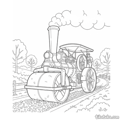 Винтажный паровой каток укладывает дорогу