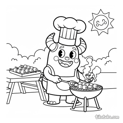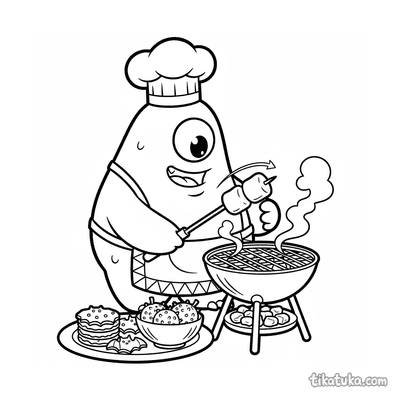 Эта коллекция раскрасок посвящена теме гриля и приготовления пищи на открытом огне. На странице собраны черно-белые контурные рисунки, которые понравятся детям, увлекающимся кулинарной тематикой.