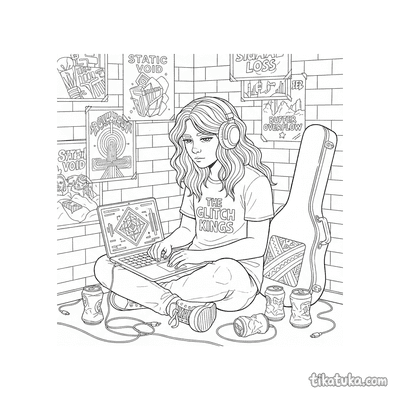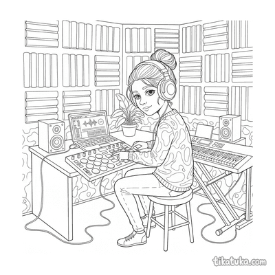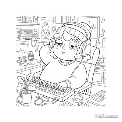 В коллекции вы найдёте эмо-друзей в музыкальном клубе, ёжика на сцене, пингвина с виниловой пластинкой и даже пиратского диджея в подвальной студии. Есть здесь кавай-хакер, чиби-кот на скамейке и lofi-продюсер — все они в наушниках. Вы можете скачать все 12 раскрасок с наушниками одним архивом для удобной печати. Контуры чёткие, без фона, что позволяет сосредоточиться на деталях и создать свою цветовую историю для каждого музыкального персонажа.