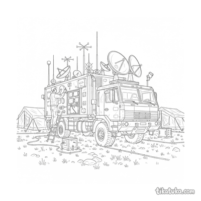 Эта коллекция раскрасок посвящена теме штаба, чаще всего полевого. На странице собраны сцены, связанные с командными пунктами и военной логистикой.
