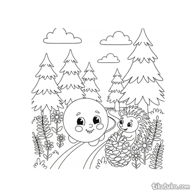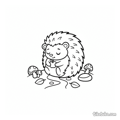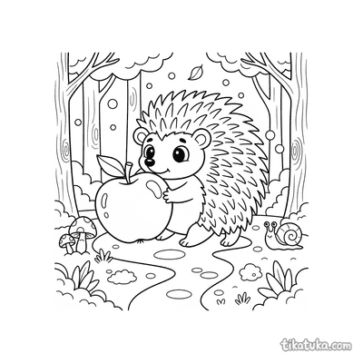 В этом разделе собраны сцены с колючим обитателем леса. Дети найдут ёжика, несущего яблоко, любопытного зверька с ягодкой, сонного в листьях и даже целое семейство на лесной тропинке. Некоторые рисунки включают сюжет из сказки про Колобка, где ёжик становится часть знакомой истории.