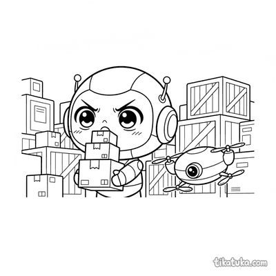 В коллекции представлены сцены, где робот-доставщик летает на тарелке, домовёнок помогает пекарю, а дружелюбные микробы поддерживают пингвина. Есть и помощники-животные, например, собака, собирающая мячи, или хаски с механическим другом. Все 21 картинок имеют чёткие контуры, что удобно для раскрашивания. Вы можете скачать любую раскраску одним файлом или распечатать несколько листов сразу, чтобы занять детей на долгое время.