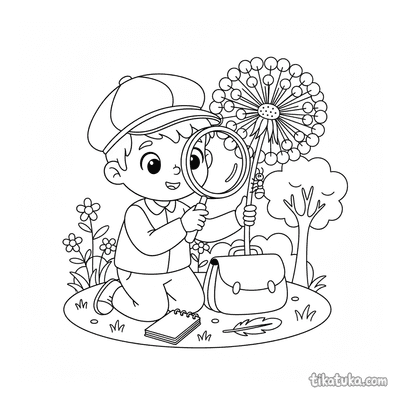 В коллекции представлены сцены из жизни насекомых: божья коровка на одуванчике или листе, шмель на ромашке, гусеница на праздничном листе-торте и паук-скакун. Есть и сюжетные картинки, например, мальчик, который изучает одуванчик с лупой.