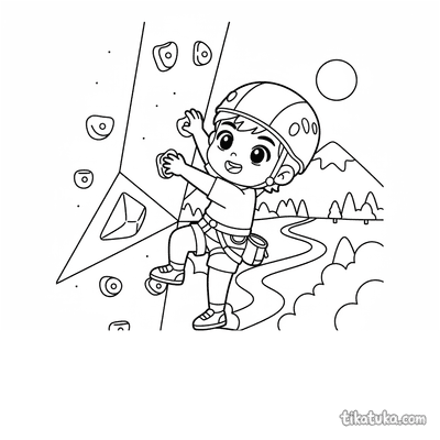 Юный скалолаз на стенке