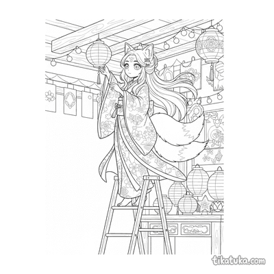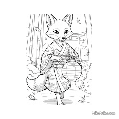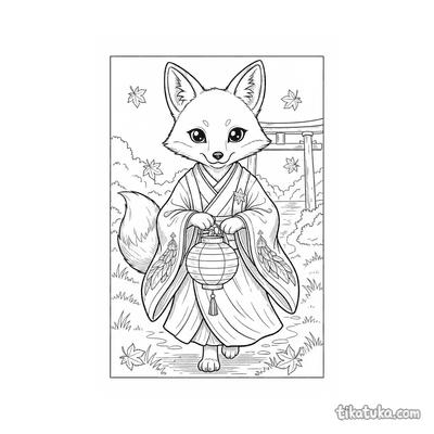 В коллекции представлены сцены с кицунэ в традиционных японских пейзажах: дух-лис с фонарём в саду храма, кицунэ, ведущий путника через бамбуковый лес, или собирающий осенние листья. Есть рисунки, где кицунэ практикует каллиграфию или прячется среди кленов, что позволяет раскрыть разные грани этого персонажа. Все 25 раскрасок доступны для бесплатного скачивания в формате PDF, что удобно для массовой печати целой тематической подборки. Четкие контуры и проработанные детали делают эти черно-белые рисунки подходящими как для онлайн-раскрашивания, так и для работы с карандашами или фломастерами.