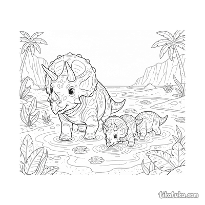 В этой подборке собраны сцены из жизни лагуны: здесь спинозавр ловит рыбу на мелководье, семья трицератопсов неспешно бродит по воде, а морская черепаха пасется на водорослях. Вы также увидите морского конька среди кораллов, загадочного морского змея и самолет, заходящий на посадку над тропическим островом. Все 11 раскрасок имеют четкие контуры, что удобно для самых юных художников. Вы можете скачать весь набор одним архивом для последующей печати или раскрашивать картинки прямо на сайте, выбирая цвета в онлайн-редакторе.