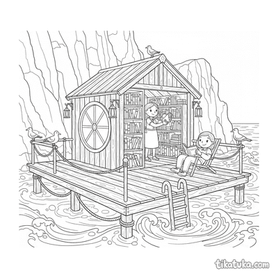 Все контуры чёткие и удобные для раскрашивания, что позволяет легко скачать и распечатать любую понравившуюся сцену. Вы можете собрать целую серию картинок о библиотеке и раскрашивать их вместе, создавая свою собственную цветную историю этого книжного мира.