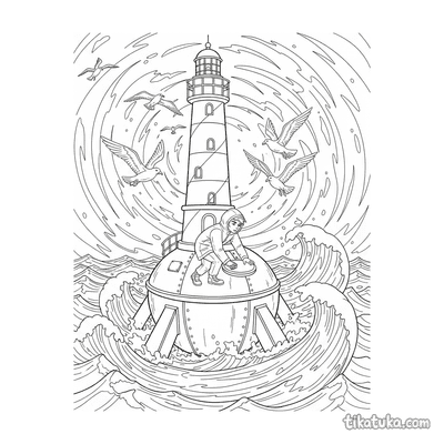 В этом разделе собраны сцены из жизни маяка: почтальон Тупик доставляет водорослевые письма, бобры строят у его подножия, а чайки украшают его перила. Вы найдете картинки, где корабль прибывает к маяку в непогоду, а также забавные моменты вроде погони за шляпой или неожиданной находки рядом со сторожевой башней. Все 25 раскрасок с маяком доступны для бесплатной загрузки в формате PDF, что удобно для печати целой серии сразу. Четкие контуры и проработанные детали на черно-белых листах подойдут для карандашей, фломастеров или онлайн-раскрашивания прямо на сайте.