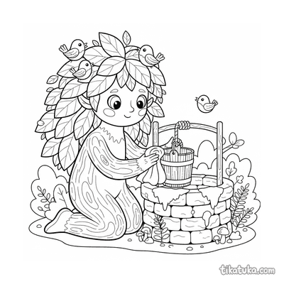 В коллекции представлены сюжеты, где девочки и девушки набирают воду из колодца, брат с сестрой у волшебного источника, а также сказочные существа — водяные, наяды, лесные духи и старцы-сказочники, охраняющие живительную влагу. Каждая картинка — это отдельная история о встрече с магией. Все 18 раскрасок доступны для скачивания одним архивом или для печати по отдельности. Четкие черно-белые контуры без фона удобно раскрашивать карандашами или фломастерами, а также можно сразу начать творить в онлайн-редакторе на сайте.