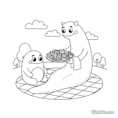 Длинный монстр передаёт тарелку с фруктовым тартом