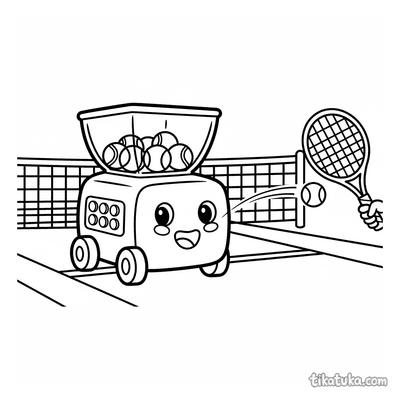 Теннисный автомат подаёт мяч