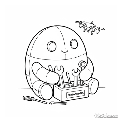 Плюшевый робот-талисман сортирует инструменты