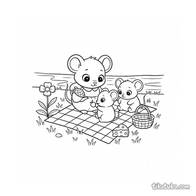 Семейство мышей на пикнике у ручья