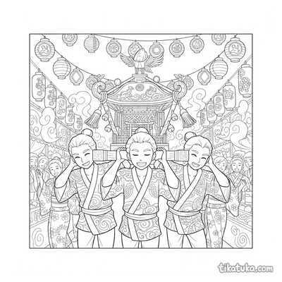 Трое несут микоси на ночном фестивале